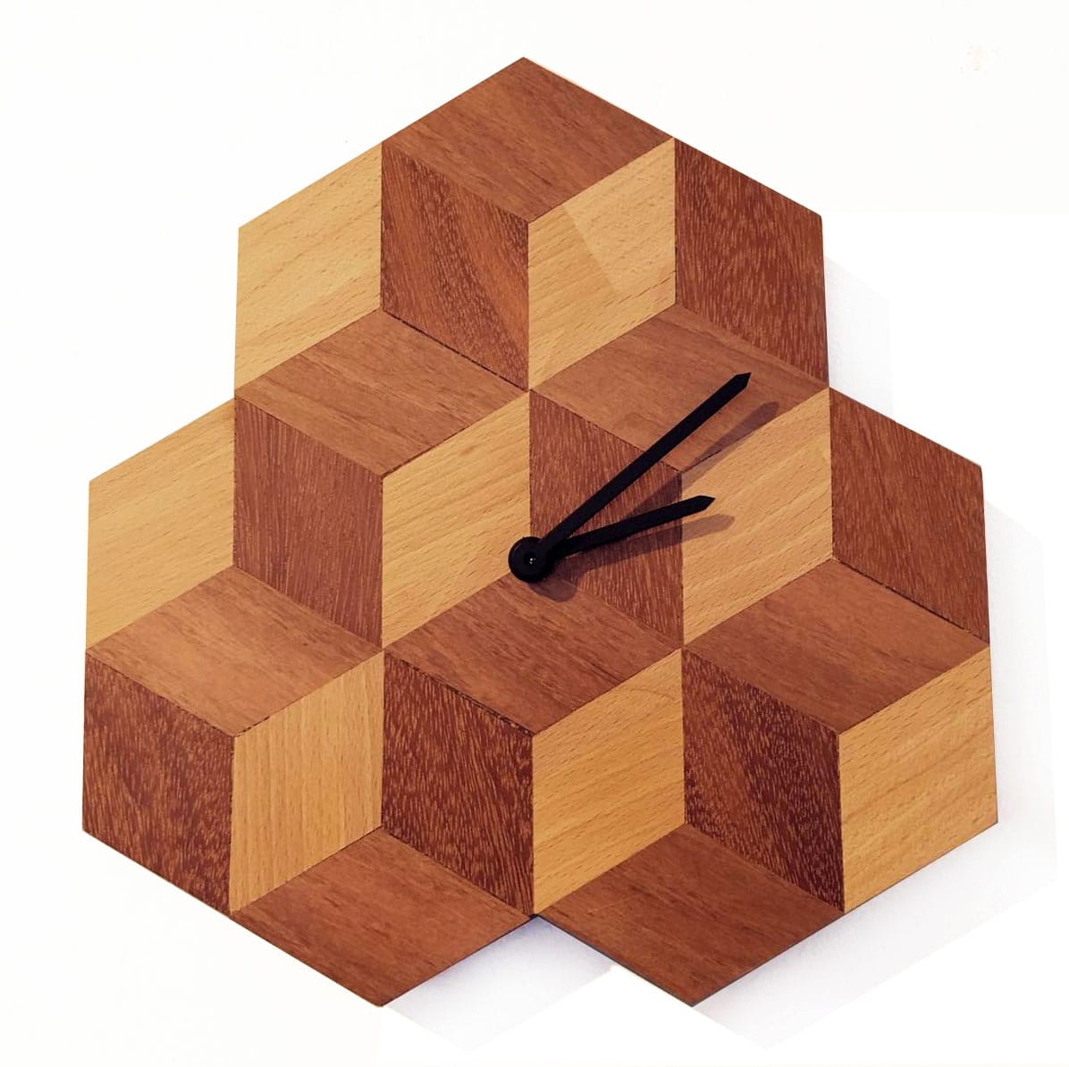 New instore; Wonderful minimalistic handmade wooden design clocks from a young designer from Valencia, Spain. Unique pieces of art on your wall. The clocks run on batteries and have a diameter of 27 cm. You can order them online or have a closer look in our gallery store.